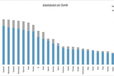 Am günstigsten waren die Arbeitskosten im Jahr 2022 in Ungarn (10,7 Euro pro Stunde), Rumänien (9,5 Euro pro Stunde) und Bulgarien (8,2 Euro pro Stunde).