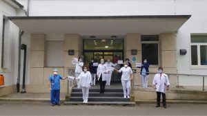 Ärzte und Pflegepersonal legen eine Schweigeminute ein Foto: CHEM