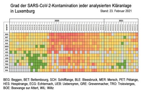 Die Virenmenge nimmt zu – zu diesem Schluss kommen die Forscher des Luxembourg Institute of Science and Technology, die mit ihrem Coronastep-Programm die Abwässer der Luxemburger unter die Lupe nehmen. „Wie in den beiden Vorwochen war auch zu Beginn der achten Jahreswoche ein leichter Aufwärtstrend zu erkennen“, schreiben die LIST-Wissenschaftler. Das deute auf eine „hohe Prävalenz“ des Virus im Abwasser hin.