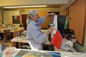 Zweimal im Jahr organisiert «Art libre» Malkurse mit Acryl und in abstraktem Malen mit der bekannten Künstlerin Milly Delage-Richter. Als wir das Maleratelier betreten, ist sie gerade dabei, den einzelnen Teilnehmern Ratschläge und Anregungen zu geben. «Hell doch diese Fläche etwas auf», rät sie Mireille. «Und trage etwas mehr Farbe auf.» Eine Ausstellung ist in Vorbereitung. Es heißt nun, die Bilder fertig zustellen und eine Auswahl zu treffen. Überall in den doch beengten Kellerräumen ist die Begeisterung am künstlerischen Gestalten spürbar.