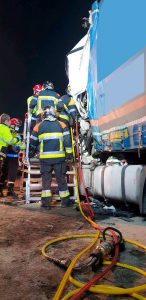 40 Tonnen schieben sich in 40 Tonnen. „Der hintere Lkw wurde zwischen die Ladungen gepresst, die Kabine wurde eingedrückt“, sagt Gantzer. Aber die beiden Personen im Inneren des Führerhauses – der Fahrer und eine Frau – leben. Die Einsatzkräfte kommen aus den Rettungszentren Grevenmacher-Mertert, Flaxweiler, Manternach und Junglinster. Als sie vor Ort eintreffen, sehen sie sich mit zwei ineinander verkeilten Lastwagen konfrontiert, beide bis zum Limit mit tonnenschweren Gütern beladen. Aber sie müssen sich einen Zugang zur Kabine verschaffen.