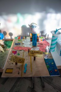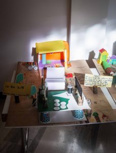 Das Ergebnis ihrer Spaziergänge sammelten sie dann im Januar in einem Workshop. Ein Pop-up-Store in der Alzettestraße war kurzerhand zu einem Atelier geworden, in dem die Kinder ihre Ideen zu Papier, oder besser gesagt auf Karton brachten. Sie bastelten und zeichneten sich ihre Welt, so wie sie ihnen am besten gefallen würde. Das Resultat waren sieben „Ideas of change“ mit den selbsterklärenden Titeln: „When the weather gets better“, „Magic Brill“, „Clean Brill Plaz“, „Carless Brill“, „Brill Secure“, „Notre futur paradis“, „Brill lauschtert an hëlleft“.