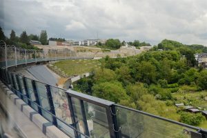 Die Bauarbeiten waren insgesamt in drei Abschnitte eingeteilt. Zum einen wurde das neue Viadukt mit einer Länge von 242 Metern parallel zu der bestehenden Talbrücke errichtet. Dann wurde das 275 Meter lange Stützmauerwerk aufgebaut. Dieses ermöglicht den Anschluss an die bestehenden Gleise der Strecke Luxemburg-Wasserbillig. Den dritten Abschnitt stellte das ungefähr 100 Meter lange Straßenbauwerk an der Ausfahrt des Tunnels am boulevard d’Avranches dar. Das nördliche Tunnelportal wurde architektonisch aufbereitet. Durch Stützmauern wird das Bauwerk verlängert und an die neue Talbrücke angeschlossen.