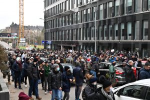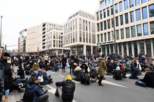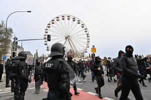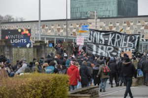 In der Menge wird unterdessen durch das Mikrofon dazu aufgerufen, nicht wieder in die Innenstadt zu ziehen – „um nicht der Polizei die Freude zu machen“. Die würde sie sonst „auf die Schnauze hauen“. Zudem solle man der Presse nichts geben, womit man die Demonstranten in einem schlechten Licht darstellen könne, so die Aufrufe.