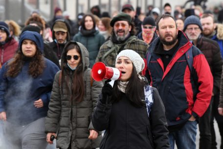 Gegen Abend entspannt sich die Situation langsam. Viele Demonstranten sind bereits weg. Auf der Kreuzung werden noch eine Weile Reden gehalten. „Liebe ist die stärkste Kraft auf der Erde und sogar darüber hinaus“, sagt die Rednerin. Sie spricht vom Universum, einer Parallelgesellschaft – und immer wieder über Freiheit.