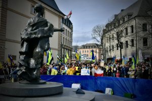 Der Krieg in der Ukraine dauert bereits 17 Tage an (Stand 12. März) und fordert täglich seine Opfer. So fand am Samstag nicht nur der übliche Protest der Corona-Maßnahmen-Gegner unter Jean-Marie Jacoby und Peter Freitag statt, es versammelten sich laut RTL zudem mehrere hundert Menschen auf dem Clairefontaine-Platz, um gegen den Krieg in der Ukraine zu demonstrieren. Der Protest wurde wie bereits am Samstag vor einer Woche von LUkraine organisiert. Die Vereinigung startete einen Protestaufruf über die sozialen Medien und über ihre offizielle Webseite.