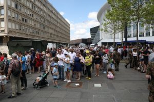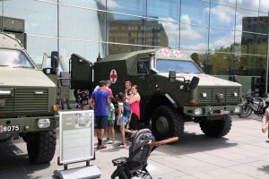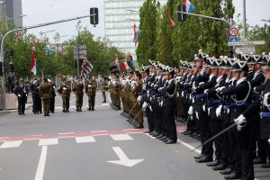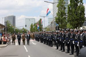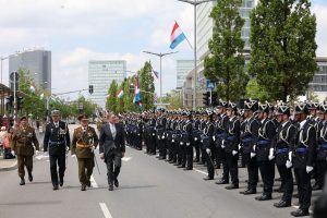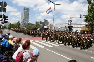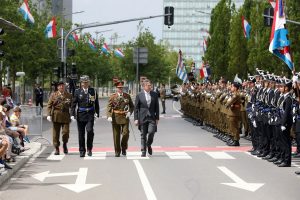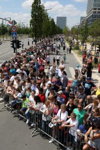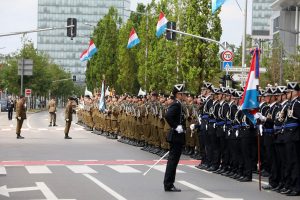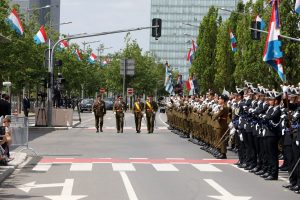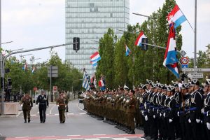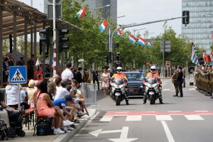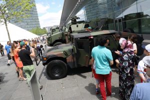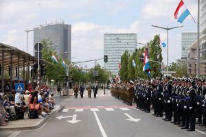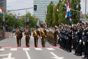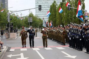 Blitzende Orden, schicke Uniformen und auf Hochglanz polierte Fahrzeuge, das haben die Besucher bei der Militärparade anlässlich des Nationalfeiertags zu sehen bekommen. Anstatt über die Avenue de la liberté im Bahnhofsviertel ging es dieses Mal über die Avenue J.F. Kennedy auf dem Kirchberg. Wegen der Arbeiten an der Tramstrecke musste die Parade umziehen, doch die neue Location stand der Tradition gut zu Gesicht. Anschließend gab es auch dieses Jahr wieder das Armeefest, doch statt im Rosengärtchen fand das Fest dieses Mal auf der place de l’Europe auf dem Kirchberg statt.