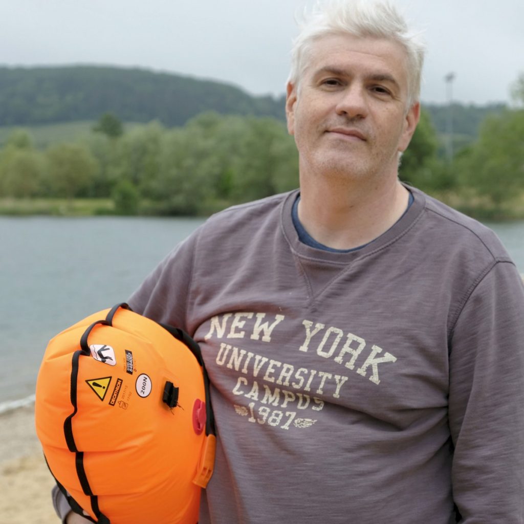 „Oppent Waasser ass a bleift geféierlech. Ech hunn immens vill Respekt dovunner.“ Eric Sassel (Foto) ist gerade dabei, eine aufblasbare Boje an seinem Fußgelenk zu befestigen. „Ech géing ni ouni déi Boje hei schwammen. Esou gesäit de Schwammmeeschter nämlech ëmmer, wou ech dru sinn.“ Der 50-jährige gebürtige Escher, der sich als Allgemeinmediziner in Bascharage niedergelassen hat, ist am gestrigen Morgen der einzige Besucher. Einsam zieht er seine Runden ohne Neopren im Baggerweiher. Bei knapp 15 Grad Wassertemperatur. Sassel kommt regelmäßig nach Remerschen und schwimmt dann stundenlang. Um den beruflichen Stress abzubauen und sich auf einen Langstrecken-Schwimmwettkampf kommende Woche vorzubereiten. Nächstes Jahr will er bei einem Distanzschwimmen im südafrikanischen Robben Island antreten.