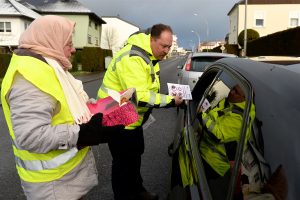 Um sich Gehör zu verschaffen und auf die unerträgliche Lage in der „rue des Trois Cantons“ hinzuweisen, fand am Mittwoch, jeweils zu den Stoßzeiten (morgens 7 bis 9 Uhr und abends 17 bis 19 Uhr), eine Sensibilisierungskampagne am Bahnübergang statt. Zusammen mit Croissants wurde morgens bei bitterer Kälte den wartenden Fahrern ein Flyer verteilt mit Ratschlägen, wie die Unannehmlichkeiten für die Anrainer reduziert werden können. So soll man zum Beispiel den Motor abstellen, wenn man vor der Schranke wartet. Auch die Entleerung des Aschenbechers oder das Werfen von Müll auf die Fahrbahn soll unterlassen werden. Auch solle man die Musik im Auto nicht zu laut stellen.