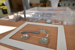 Gleich hinter dem Haupteingang stehen allerlei Regale. Gefüllt sind sie mit Industrieabfällen wie Metall- und Plastikteilen, fein geschliffenen Holzklötzen, Nähgarn, Teppichboden, gefalteten Pappverpackungen und Elektrokabeln. All diese Dinge sollten eigentlich im Müll landen. Doch die Jugendlichen aus dem therapeutischen Bereich des «Centre Formida» haben sie vor der Verschrottung bewahrt. In Begleitung eines Erziehers holen sie die Materialen bei großen Unternehmen wie L’Oréal, Luxlait oder Ferrero, aber auch bei kleinen und mittleren Handwerksbetrieben ab, erklärt Wolfgang Ost, Missionsbeauftragter bei Arcus und Leiter des therapeutischen Zentrums.