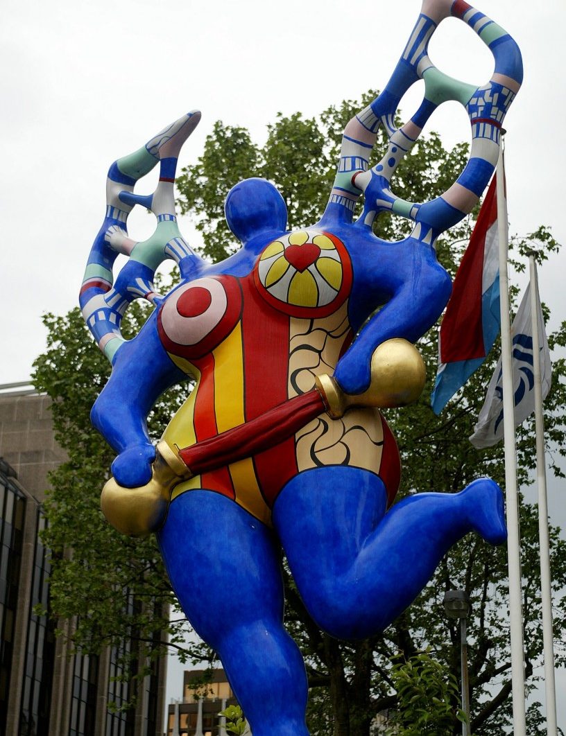 «La Grande Tempérance» ist Teil einer Skulpturenserie von Niki de Saint Phalle. Die Nanas – so heißen die oft überlebensgroßen Frauenstatuen – wurden im Rahmen des Europäischen Kulturjahres 1995 hierzulande ausgestellt. Die Stadt Luxemburg beschloss, eines der Werke zu erwerben: Die Wahl fiel auf die blaue Dame mit den Flügeln und dem kunstvoll verzierten Einteiler, die für die Tugend Mäßigkeit steht. Gemeinde, Post und die Bank BGL beteiligten sich gemeinsam an den Kosten: Für 15 Millionen Luxemburger Franken wurde die Skulptur ins Großherzogtum gebracht. 16 Jahre lang stand sie auf dem Hamiliusplatz gegenüber dem alten Postgebäude.