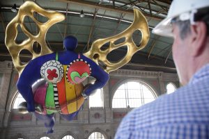«In Duisburg hat sich ein Spezialist für Skulpturen von Niki de Saint Phalle um die Restaurierung gekümmert», erklärt Boris Fuge von den städtischen Museen. «Die Statue wurde mehrmals Opfer von Vandalismus. Da waren Graffiti und viele Kratzspuren dran. Die Restaurierung eines solchen Kunstwerkes verlangt viel Arbeit, vor allem um die Farben wieder so aussehen zu lassen wie vorher. Auch im Inneren der Skulptur wurden Kontrollen durchgeführt, denn aufgrund von Wettereinflüssen kann es immer wieder zu Schäden kommen.»