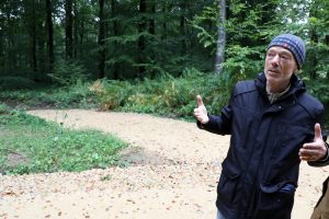 Direkt hinter Hobscheid und dem Weiler “Kräizerbuch“ erstreckt sich Wald. Ein Schild neben dem „Chalet“ macht auf die Wanderwege aufmerksam, ein Mountainbiker radelt trotz Regen in den Wald. Kleine Pfade führen ins dunkle Grün und außer dem Knistern von Ästen unter den Füßen und Vogelgezwitscher ist nichts zu hören. Wäre da nicht das Geräusch von Lkws und Baggern, die im Wald arbeiten. Da, wo sie fertig sind, sind die Wege zwischen sechs und zehn Meter breit und mit einem gelblichen Kieselsteinbelag versehen. Das fällt auf. Mehr als 30 Kilometer sind schon so bearbeitet. Das hat Jeannot Weber (61), in Hobscheid aufgewachsen und wie er sagt, «seit er laufen kann» im Wald unterwegs, dokumentiert.