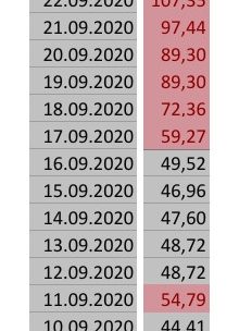 Eine Hoffnung für Luxemburg wären wohl nur noch rasch fallende Infektionszahlen. Laut früheren Erklärungen der deutschen Bundesregierung wird die Risikogebiets-Liste alle zwei Wochen aktualisiert, das nächste Mal wäre dann am 30. September. Die Chancen stehen aber knapp, bis dahin unter die kritische Marke zu kommen: Denn in den kommenden vier Tagen wird Luxemburg weiter darüber liegen – selbst, wenn ab jetzt keine einzige Infektion mehr festgestellt würde.