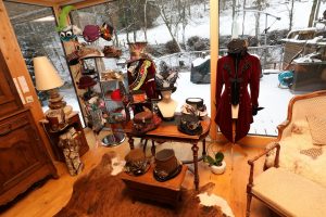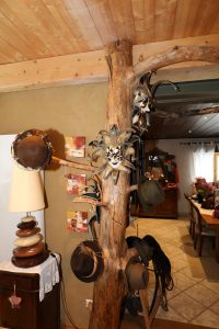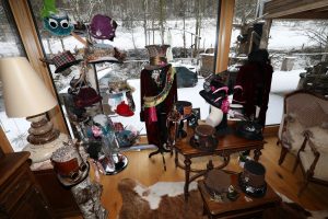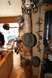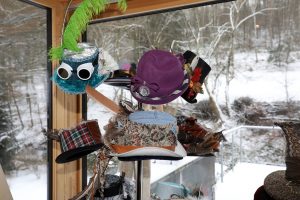 Véronique Schollers Kunsthandwerk nimmt viel Raum in ihrem Zuhause ein. Beim Betreten der offenen Küche fallen sie sofort ins Auge: Hüte, die über den gesamten Raum verteilt sind. Auf der Küchentheke liegen welche aus Filz – die neueste Idee von Véronique. Vor den weitläufigen Fenstern und auf mehreren Tischen stehen, liegen und hängen weitere ihrer ausgefallenen Kreationen.