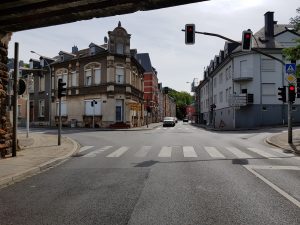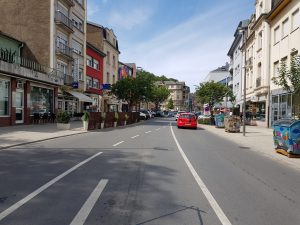 Der Radweg von Kockelscheuer verläuft in Richtung Cessingen, wo man sich auf der Hauptstraße wieder in den Straßenverkehr einreihen muss. Eine Baustelle behindert den Verkehr noch zusätzlich. Doch die Hauptstadt ist erreicht und über Hollericher Nebenstraßen geht es in Richtung Stadtpark. Das ist dann wiederum recht pittoresk und gut per Rad zu fahren. Ein Höhepunkt der Strecke ist der Pfaffenthaler Lift, der einen ins Tal bringt. Auf den letzten Metern vom Lift zum neuen Bahnhof gibt es keinen Radweg.