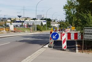 Die Route Esch – Luxemburg misst offiziellen Angaben nach insgesamt 27 km und soll ein Vorgeschmack auf den „Velo-Expresswee“ sein, der in einigen Jahren zwischen Esch und Luxemburg entsteht. Das ist die Route F auch, denn ab Foetz geht es entlang der Autobahn in Richtung Stadt. Zwischen Steinbrücken und Leudelingen befindet sich dann die 2,5 km lange, im August für den Autoverkehr gesperrte Straße. Das Problem: Man muss erst mal mit dem Fahrrad nach Foetz kommen. Das geht bis ins Escher Zentrum noch recht gut auf den Radwegen, doch ab der Eisenbahnbrücke hinter dem Bahnhof führt der Weg in den Autoverkehr. Und auf die doch recht enge Hauptstraße durch Schifflingen. Erst beim Fußballplatz gibt’s auf dem Radweg wieder Entspannung. Nicht sehr lange allerdings, denn unmittelbar hinter dem Recyclingcenter ist der Rad- und Fußweg durch eine Baustelle blockiert, sodass es wieder auf die Straße geht. Am Wochenende vielleicht noch machbar, aber wochentags in Anbetracht des Auto- und Lkw-Verkehrs rund um die Einkaufszone Foetz nicht ungefährlich. Am Supermarkt geht es dann auf dem separaten Gehweg vorbei.