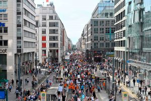 Wir stellen fest, dass bei der Demo auf der Straße des 17. Juni die Abstände nicht ausreichend eingehalten werden. Wir fragen derzeit den Versammlungsleiter, ob er unter diesen Umständen seine Versammlung überhaupt beginnen möchte und raten vom weiteren Zuströmen ab.