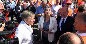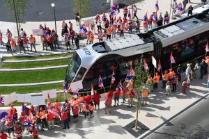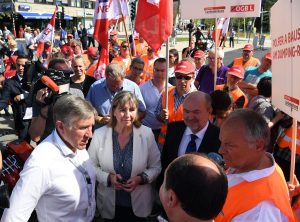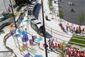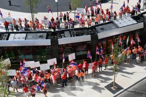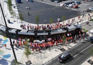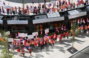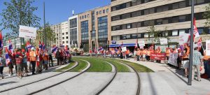 Protest von OGBL und FNCTTFEL bei der Eröffnung der neuen Tramstationen in Luxemburg