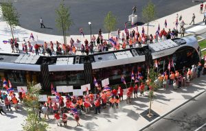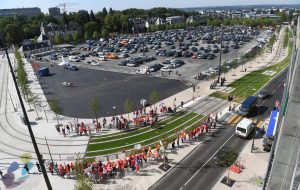 Drei neue Haltestellen der Tram wurden am Freitag eingeweiht und während Fanfarenklänge die offiziellen Gäste begrüßten, spielt oben am Glacis eine andere Musik. Mit einem Pfeifkonzert wurden die beiden Trams von zahlreichen Gewerkschaftern begrüßt, die sich wohlverstanden über das neue Transportmittel freuen, nicht jedoch über die Arbeitsbedingungen der dort Beschäftigten, zumal die Betreibergesellschaft zu zwei Dritteln dem Staat und zu einem Drittel der Gemeinde Luxemburg gehört und damit einen öffentlichen Charakter hat.