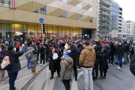 Die Demonstranten ziehen sich von der Blockade der Polizei zurück und gehen in Richtung Glacis – die Situation entspannt sich wieder etwas.