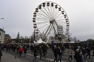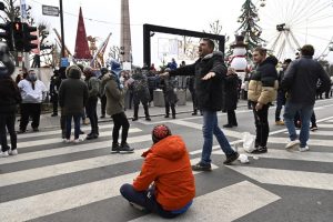 Vor dem Weihnachtsmarkt an der Gëlle Fra hat der Protestzug vom Bahnhof angehalten. Die Polizei hat sich vor dem Markt aufgestellt. Nach kurzer Zeit zieht der Zug weiter in Richtung Boulevard Royal.