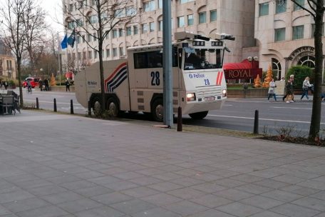 Ein belgischer Wasserwerfer steht mittlerweile am Boulevard Royal bereit – bislang kam er nicht zum Einsatz.