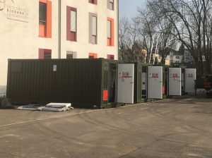 Jedenfalls kommt man nach dem Abzug der Streitkräfte ungehindert zu den Containern. Sie stehen vor dem Gebäude der „Integrated Biobank of Luxembourg“. Auch Männer mit weißen Kitteln machen mit ihrem Handy Fotos. Bei einem könnte es sich um Romain Nati gehandelt haben, den Lungenarzt und Chef des CHL.