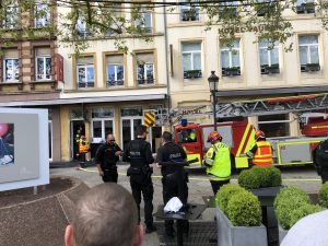 Die ersten Feuerwehreinheiten fanden schließlich eine brennende Abzugshaube im Keller der Brasserie. Das Feuer hatte sich bis in die oberen Stockwerke des Gebäudes und somit Richtung Dach ausgebreitet. Die Rettungskräfte sahen sich starkem Rauch ausgesetzt und gingen paarweise mit Atemschutzgeräten in das Haus, um eine horizontale Ausbreitung über die Dächer zu vermeiden.