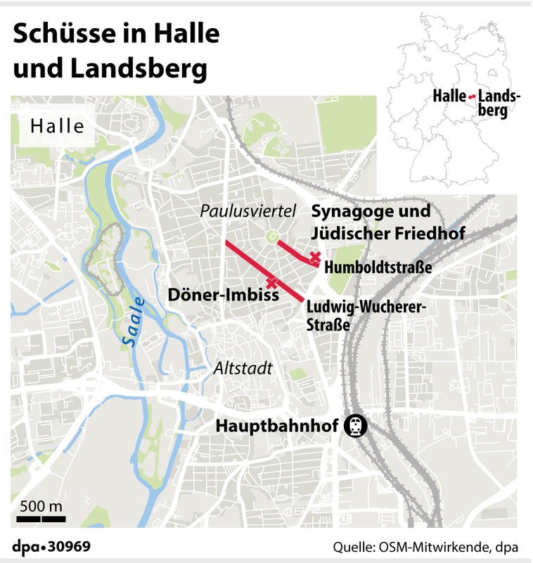 Auch in Landsberg, rund 15 Kilometer östlich von Halle, gab es Schüsse. Ein Zusammenhang zu Halle war zunächst von den Behörden aber nicht bestätigt worden.