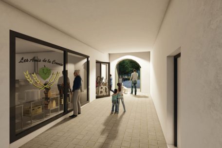 In der bestehenden Scheune werden die Restaurantküche und eine Mikrobrauerei, die durch einen Durchgang abgetrennt sind, ihr neues Zuhause finden. Ein Durchgang, wie man ihn aus Einkaufszentren kennt, soll zum neu geschaffenen Biergarten und zu Spielplätzen führen. Ein Schaufenster wird es dort ermöglichen, das Treiben in der Mikrobrauerei von außen zu beobachten. Es wird die Möglichkeit bestehen, die vor Ort produzierten Biere zu verkosten oder etwa an Brauerei-Workshops teilzunehmen.