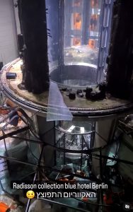 Die Verkehrsinformationszentrale Berlin twitterte, die Karl-Liebknecht-Straße, an der das Hotel mit dem Aquarium liegt, sei gesperrt.