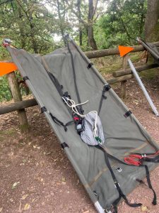 Nachdem die Idee steht, designt Hager die Pritschen selbst, baut und testet sie. Wenn er mit seiner Gruppe – zehn Teilnehmer sind das Maximum, fünf Hänger gibt es – kommt, ist der Grillplatz über der Cloef für ihn reserviert. Er mietet ihn von samstagabends bis sonntagmorgens, wo es noch ein Frühstück vor der Abreise gibt. Heruntergefallen ist seit 2014, der ersten Saison der Hänger, noch niemand. Die Statistik will er halten und gibt vor der Montage letzte Tipps, wie man am besten darin liegt.