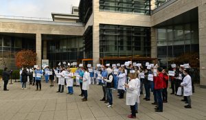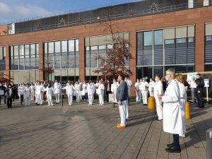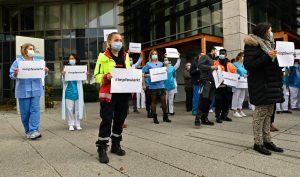 Sorgen bereiten ihm nicht nur die steigenden Infektionszahlen, sondern auch die ablehnende Haltung mancher Menschen gegenüber der Impfung und anderen Maßnahmen. Aus diesem Grund haben sich zahlreiche Mitarbeiter der Gesundheitsberufe am Donnerstag dazu entschlossen, dem Aufruf einer Handvoll Kollegen zu folgen und vor dem Eingangsbereich der jeweiligen Krankenhäuser ein deutliches Zeichen für mehr Solidarität zu setzen.