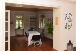 Draußen vor dem von Efeu umrankten Haus in Lorentzweiler wirbt ein Plakat für das Projekt. Der Aufgang in den ersten Stock ist mit einem Teppich verhangen, Zutritt verboten. Von dort kommen Geräusche, Handwerker arbeiten. Die „Villa Lorenz“ ist ein altes Haus und soll später das „CO“ beim „Habitat“ mit Leben füllen. Die Küche mit den schwarz-weißen Bodenkacheln zeugt jetzt schon davon, dass sie genutzt wird. Gläser und Getränke stehen ordentlich aufgereiht in den Regalen.