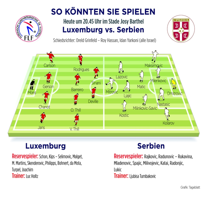 «Namen sind nicht entscheidend, sondern die Qualität. Die Serben haben genügend Auswahl. Individuell gesehen sind sie Weltklasse und es wird sehr schwer werden, gegen sie zu bestehen», sagt Holtz. Hoffnung macht dem FLF-Coach die Kohäsion innerhalb der Mannschaft. «Serbien hat weniger Spielfluss und kollektive Qualität als beispielsweise die Ukraine. Und gegen diesen Gegner haben wir gezeigt, zu was wir in der Lage sind», fährt Holtz weiter. Hoffnungen auf den Punktgewinn macht die «Schueberfouer». Zu keinem Zeitpunkt des Jahres punkten die Luxemburger so regelmäßig wie im September.