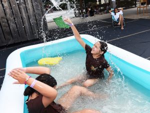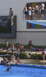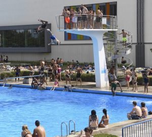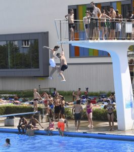 Aber mal ehrlich – die Menschen, die einen der begehrten Plätze an den Pools ergattern, können das Gefühl vom Urlaub zu Hause so richtig genießen. Kein noch so winziges Wölkchen trübt den blauen Himmel oder die Stimmung. Die Sonne strahlt herunter und die Mission «Sommerbräune» ist bei den meisten schon halb geglückt. Natürlich darf man das Wichtigste bei den Sommertemperaturen nicht vergessen: Eiscreme für alle, ob Groß oder Klein, lautet das Motto derzeit wohl überall.