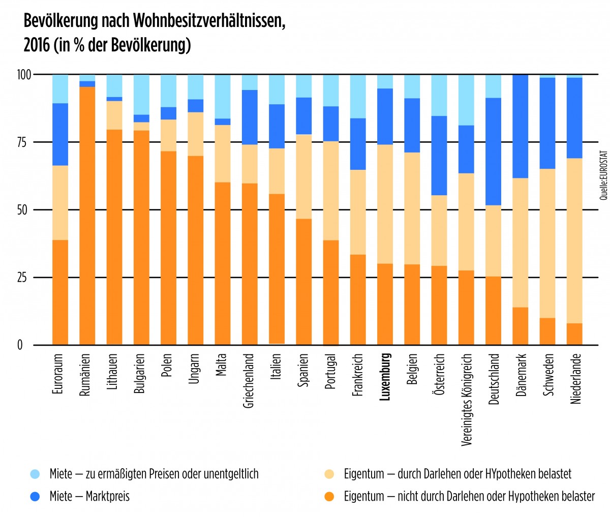 Besitzer der eigenen Wohnung. Tatsächlich liegt das Großherzogtum jedoch nur im europäischen Durchschnitt.