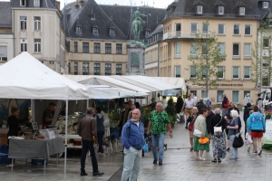 20230715, Luxembourg, place Guillaume II, Der "Stater Maart" ist zurück auf dem "Knuedler", Situé au cœur de la ville, le Stater Maart, est un marché bihebdomadaire qui offre un vaste choix produits régionaux et saisonniers, Le Stater Maart se tiendra à nouveau sur la place Guillaume II dès le samedi 15 juillet 2023, Foto: Editpress/Didier Sylvestre