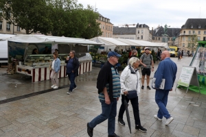 Man hätte sich besseres Wetter wünschen können und dennoch zog es am Samstag einige Menschen in die Hauptstadt, um auf dem „Stater Maart“ ihre Einkäufe zu erledigen. Das wieder in der gewohnten Umgebung auf dem „Knuedler“. Wegen der Baustelle auf dem hauptstädtischen Rathausvorplatz hatte der Markt mehr als zwei Jahre lang auf dem Hamilius-Platz und in den angrenzenden Straßen stattfinden müssen. Seit Samstag allerdings können die Gäste des Marktes ihre Einkäufe unter freiem Himmel nun wieder auf dem „Knuedler“ erledigen – an 40 Ständen und das wie gewohnt samstags und mittwochs von 7.30 Uhr bis 14 Uhr.
