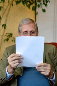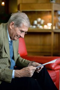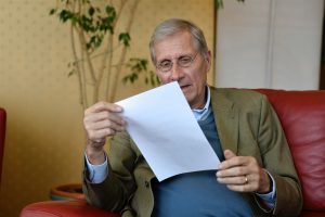 Ulrich Wickert schmunzelt, greift zu seiner Lesebrille, nimmt den Brief entgegen und liest ihn in Ruhe. Sein Mienenspiel entfaltet sich.