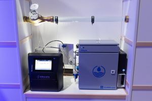 Hinter ihm ist am Stand mit dem Titel „Water Watch“ eine Installation mit einem durchsichtigen Kanalisationsrohr zu sehen, unter dem ein hellgraues sowie ein dunkelgraues Gerät stehen. Auf einem Bildschirm auf der dunklen Maschine ist eine rote Linie zu sehen. An manchen Tagen geht diese etwas in die Höhe, an anderen hingegen sinkt sie. „Wir zeigen die rezente Technologie, dank der heute Daten zu unserem Trinkwassernetzwerk gesammelt werden. In Echtzeit können diese beispielsweise online oder übers Handy abgelesen werden“, erklärt Jean-Baptiste Burnet vom LIST.