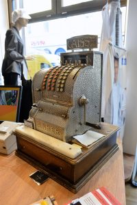 In dem kleinen Laden im Bahnhofsviertel zeugen die alte Registriermaschine und die Theke, auf der sie steht, von alten Zeiten und zeigen das Traditionsbewusstsein der Maison Lessure. Das Haus, das 1870 als Stoffhandel begann, ist eine Referenz in Sachen Arbeitskleidung.