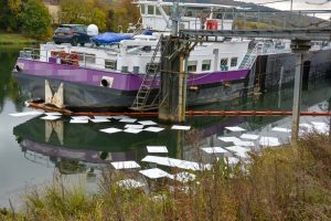 Am Samstagmorgen kam es im Merterter Hafen zu einer Umweltkatastrophe. Beim Entleeren eines Tankschiffes wurde ein Schieber falsch gesetzt, sodass Hunderte Liter Diesel in die Mosel flossen.