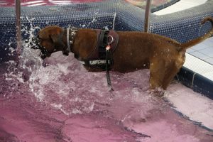 Denn ein Highlight der etwas anderen Art gab es am Sonntagmorgen zu bestaunen. Der „Escher Hondsveräin“ hatte seine Mitglieder (und leider nur die) zum Hundeschwimmen eingeladen. Die Vierbeiner genossen es in vollen Zügen, die Escher Badeanstalt einmal für sich ganz alleine zu haben.