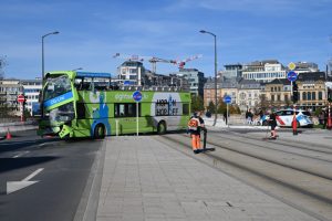 Ein Touristenbus und ein Lastwagen sind am Mittwoch gegen 11.40 Uhr auf dem Pont Adolphe kollidiert. Die Tramspur und eine Fahrbahn waren zeitweise nicht befahrbar.
