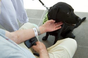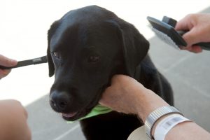 Zudem gilt es stets, wichtige Hygienemaßnahmen einzuhalten: Miss muss öfter zur Tierärztin oder zum Tierarzt, sie darf nicht zu Kranken mit offenen Wunden und die Menschen desinfizieren sich nach den Übungen mit ihr die Hände. Nicht mehr als 20 Stunden pro Woche ist die Labradorhündin auf den Stationen unterwegs. In ihrem eigenen Pausenraum liegt ein großes, blaues Kissen zum Ausruhen bereit. „Miss hat als einzige Mitarbeiterin ihr Bett mit zur Arbeit gebracht“, scherzt Tessy Ruppert. Als Ausgleich geht Frauchen nach getaner Arbeit täglich sechs bis zehn Kilometer mit Miss spazieren und auch zum Möbelkauf oder ins Restaurant kommt die Familienhündin mit – als ausgebildete Assistenzhündin darf sie das.