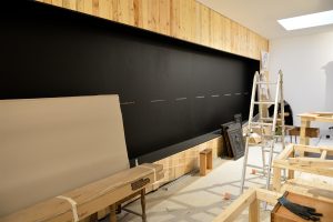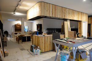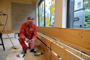 In Düdelingen sind rund 30 Freiwillige aktiv am Umbau beteiligt. Wer wann arbeitet, wird über eine WhatsApp-Gruppe geregelt. „Die ganzen Holzpaletten mussten erst mal auseinandergenommen werden. Das hat Stunden gedauert“, so Delphine weiter. Das Holz verziert nun die Wände und die Theke. Die Räumlichkeiten bestanden vorher aus einem einzigen großen Raum, der nun durch Trennwände unterteilt wird. „Dadurch haben wir alle möglichen Freiheiten bei der Gestaltung“, sagt Delphine.