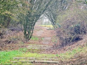 Einst befanden sich in dieser Region die Anlagen der Steinforter Hüttenwerke, deren Ursprung auf das Jahr 1846 datiert. Im Eischtal wurden in den Anfangsphasen sogenannter Alluvialerz im Tagebau abgebaut. Das Erz befand sich auf der freien Feldflur, etwa einen halben bis einen Meter tief unter der Rasen- oder Ackerfläche. Als Nebenprodukt der Schmelz fielen jede Menge Schlacken an. Diese wurden in Schlackenhalden rund um die Hüttenwerke aufgeschüttet und gelagert. Teilweise wurden die Schlacken nach dem Ersten Weltkrieg in der Ziegelfabrik verarbeitet.