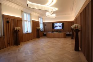 Für die Fotos von Georges Mischos Vorgängern sucht man indessen noch eine neue Bleibe, wie auch für die Büste von C.M. Spoo. Könnten die Mauern im Saal sprechen, könnten sie sicher von vielen Anekdoten berichten. Früher durfte im Sitzungssaal geraucht werden, die Spuren an Decken, Wänden und Gemälden wurden jetzt bei der Renovierung beseitigt. Der an den Sitzungssaal angrenzende Balkon wurde stabilisiert und kann jetzt wieder bedenkenlos betreten werden. Man könne mit Recht stolz auf den neuen Sitzungssaal und den neuen Hochzeitssaal sein, so Mischo abschließend, ehe das obligate Bändchen durchgeschnitten wurde.